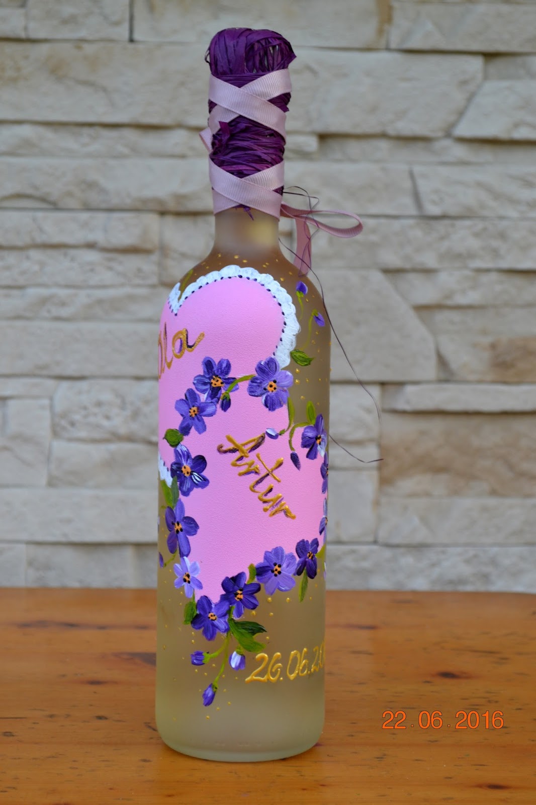 Pisząc o ślubach i weselach, mam okazję opublikować kilka moich propozycji na upamiętnienie takiego wydarzenia. Porcelana zostanie na długo, a malowana butelka z winem to alternatywa zamiast kwiatów…