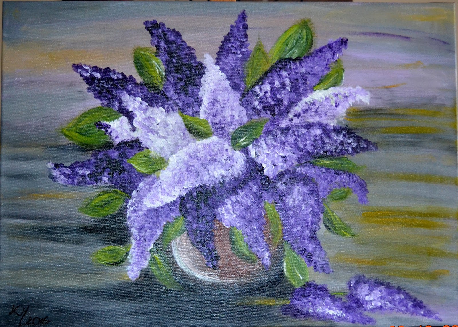 Bzy majowe to coś, co lubię bardzo 🙂 Takie liliowe mam przed domem, ale z przyjemnością zobaczyłam je malowane przez Ciebie 🙂
