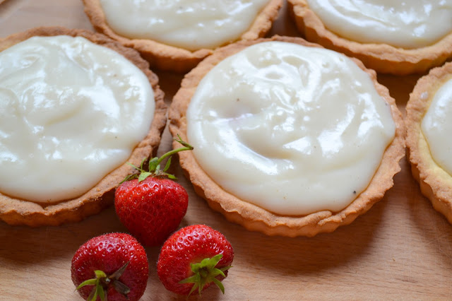 Taki krem nakładamy na upieczone, kruche spody.
