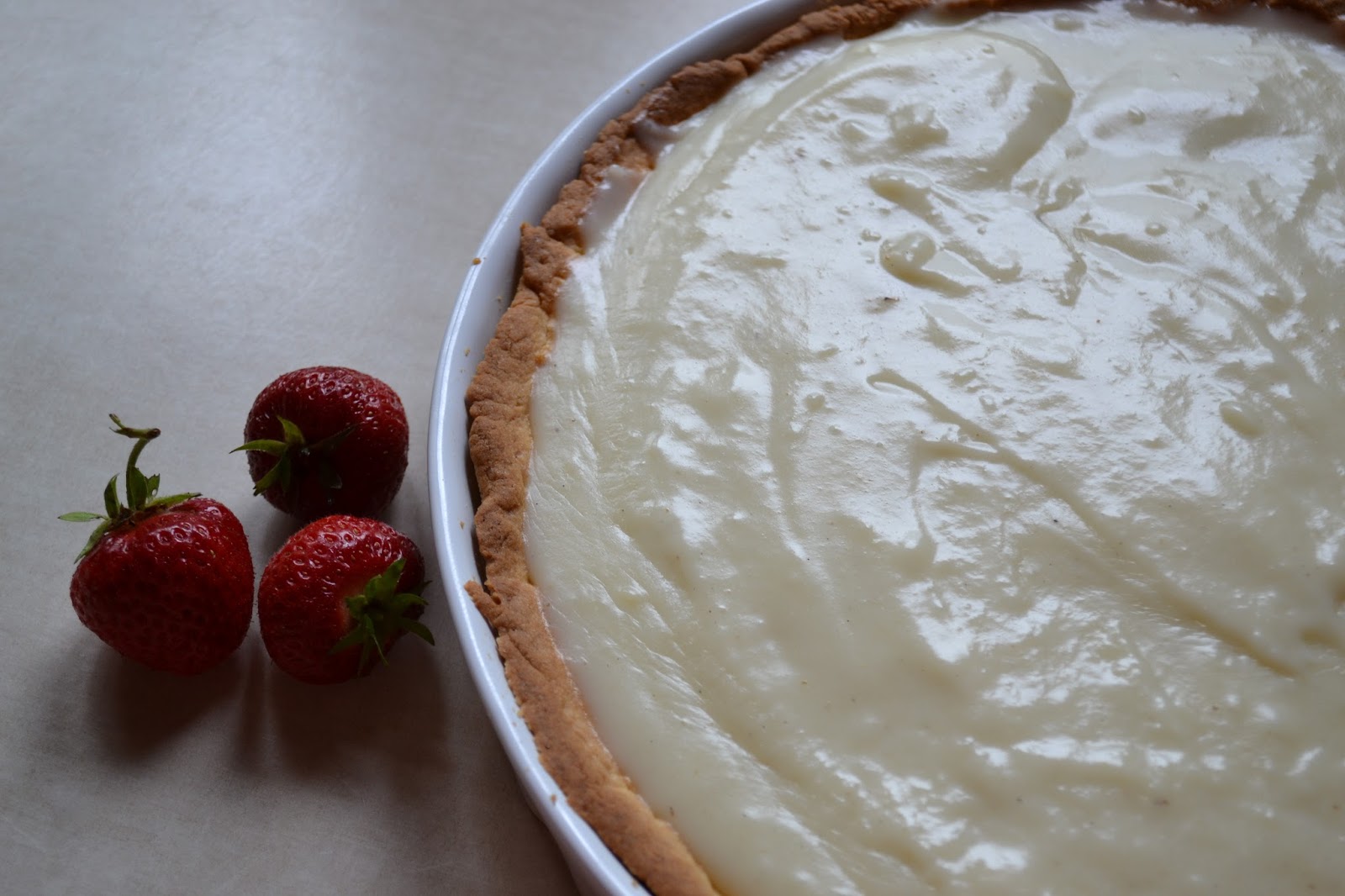 Żeby nie tracić czasu, krem zaczynamy gotować w chwili, gdy kruche ciasto ląduje w piekarniku.